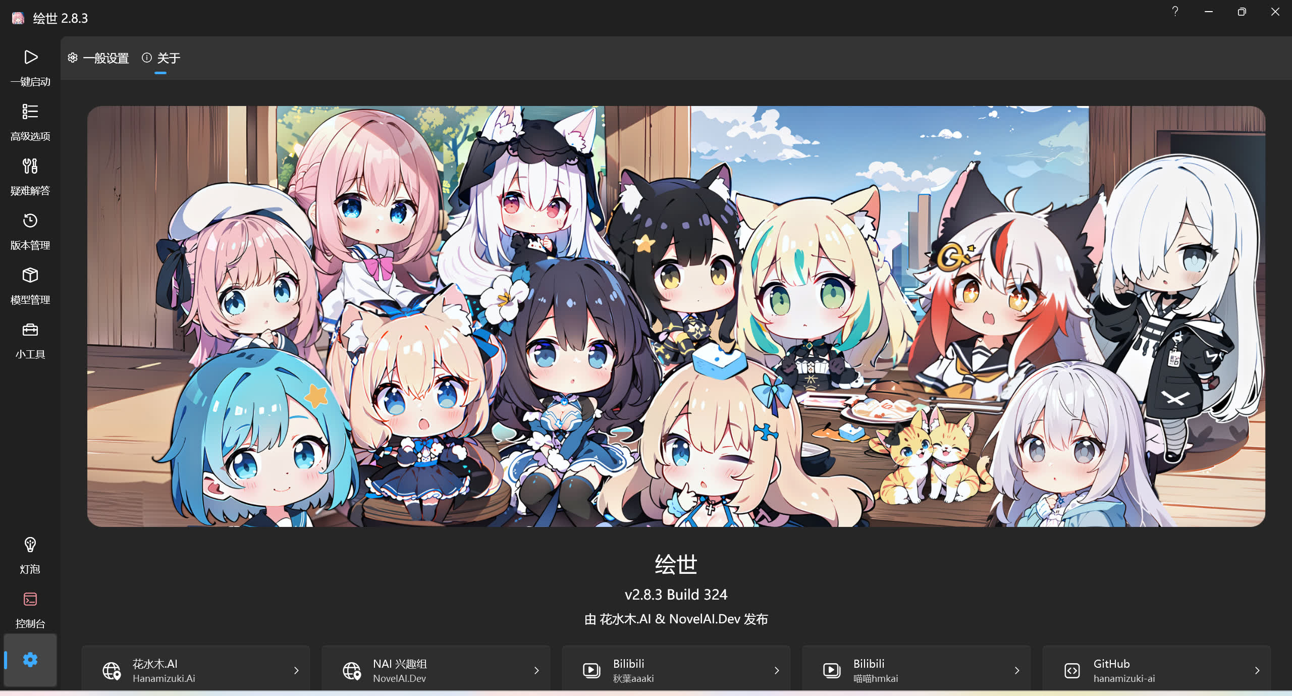 如果想要更改这个界面的图片,可以将一张图片命名为head_image.jpg,将这个图片放入.launcher文件夹中,重启绘世启动器后即可看到刚刚的图片。