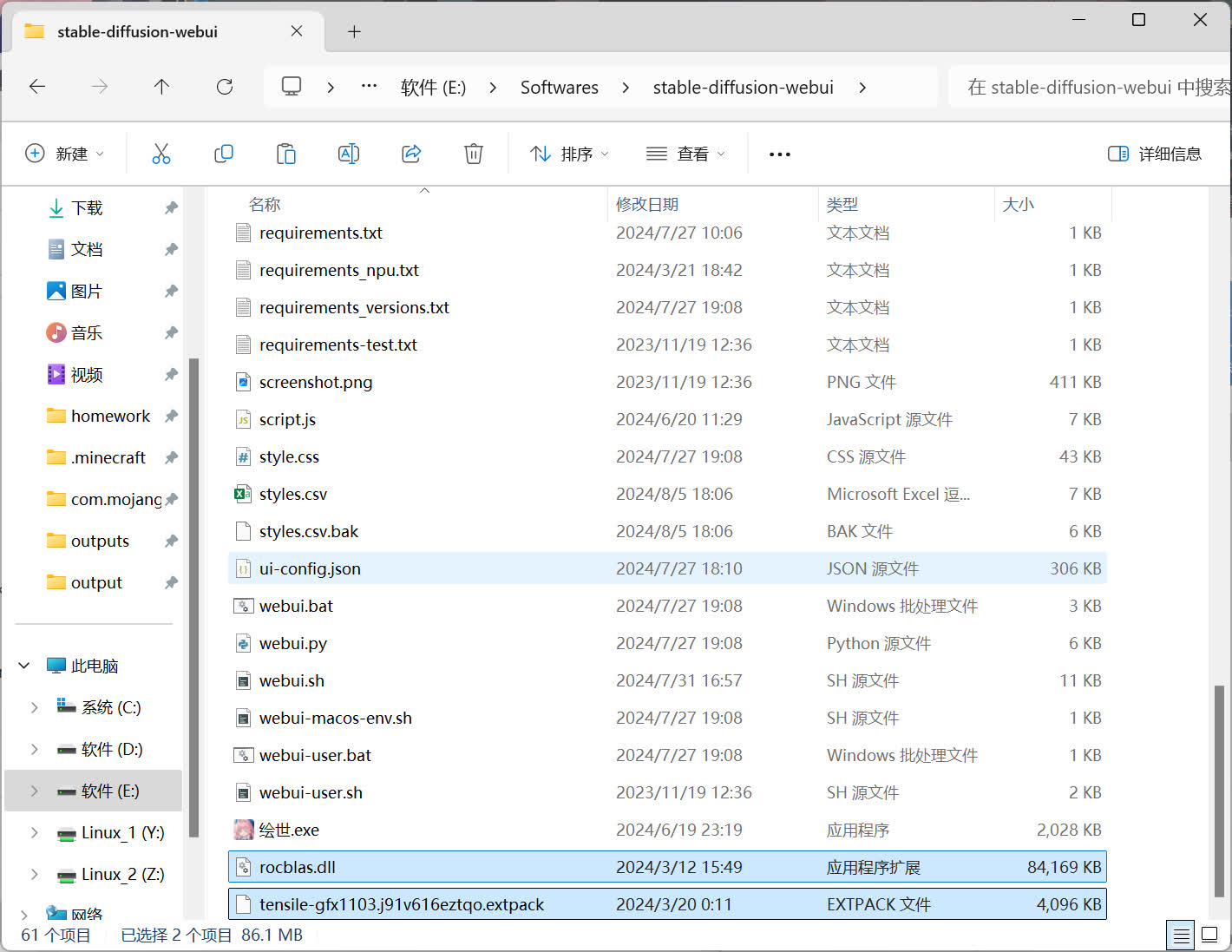 如果 AMD 显卡型号为 AMD 780m / AMD 760m / AMD 680m,需要手动下载 ZLUDA 文件,点击此处下载 780m_20240321_163205.7z,下载该文件完成后,使用 Bandizip / 7zip / 其他解压缩软件 将该压缩包内的所有文件解压到绘世启动器所在目录。